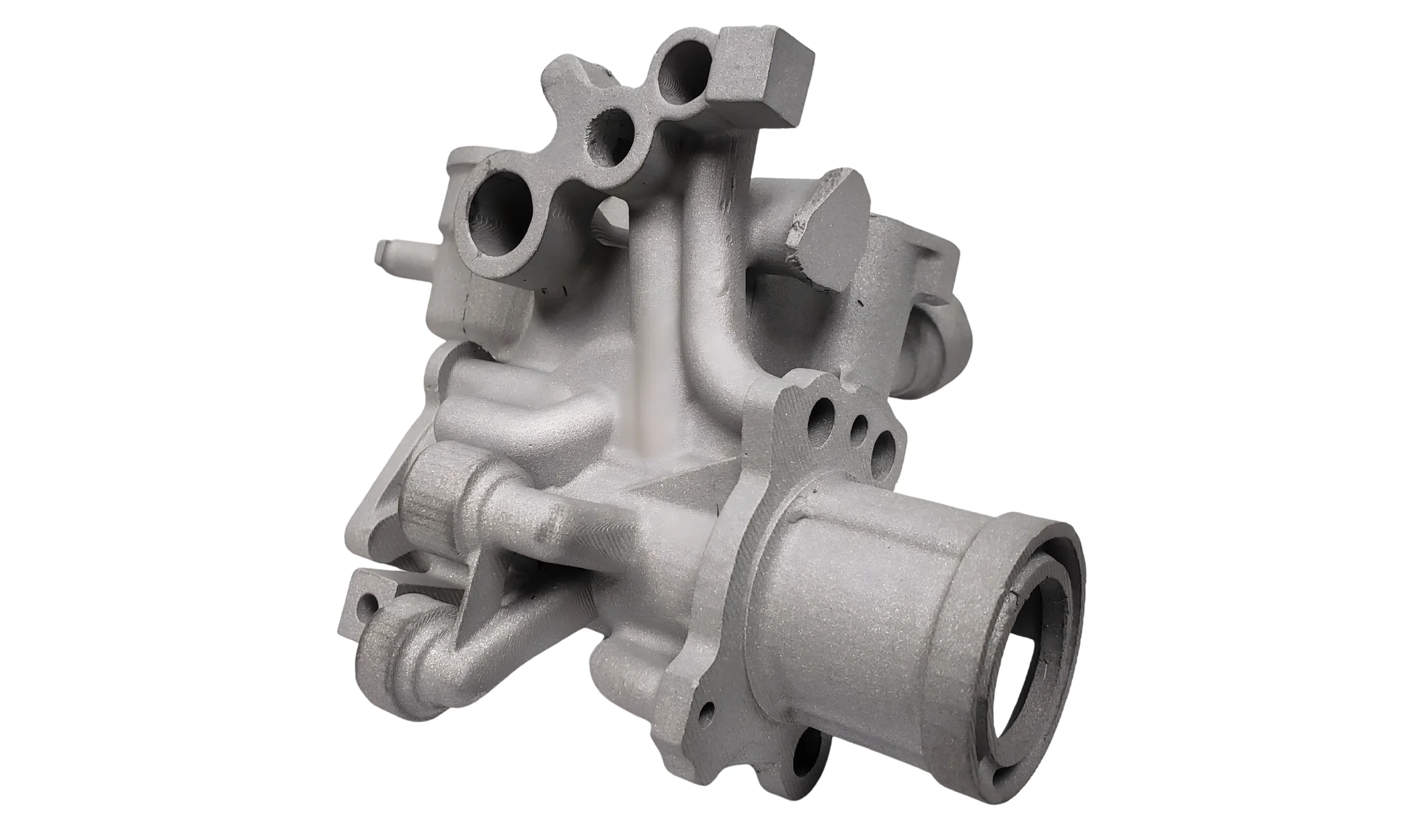 Traditional valve body casting requires multi-piece tooling that introduces parting lines and compromises accuracy. LAMP™ eliminates this by printing monolithic ceramic shells that capture all internal features — multiple flow paths, pressure regulation chambers, and integrated sealing surfaces — in a single casting operation: